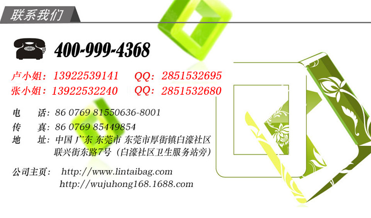 廣東省東莞市虎門(mén)鎮(zhèn)白沙泰滔工業(yè)園E棟林泰箱包 電話:13433013383